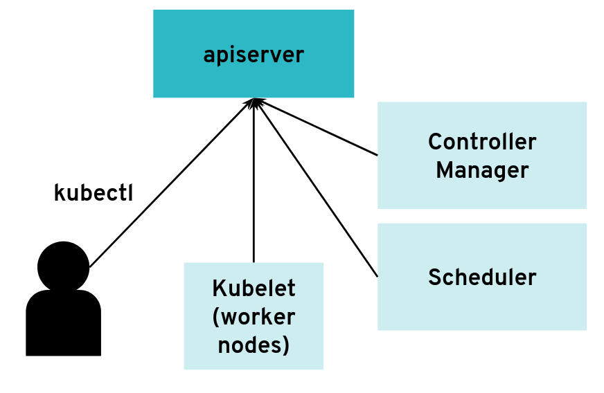 In most configurations, different components connect directly to the Kubernetes API server, often using a kubeconfig with a client certificate. The API server is started with the flag: